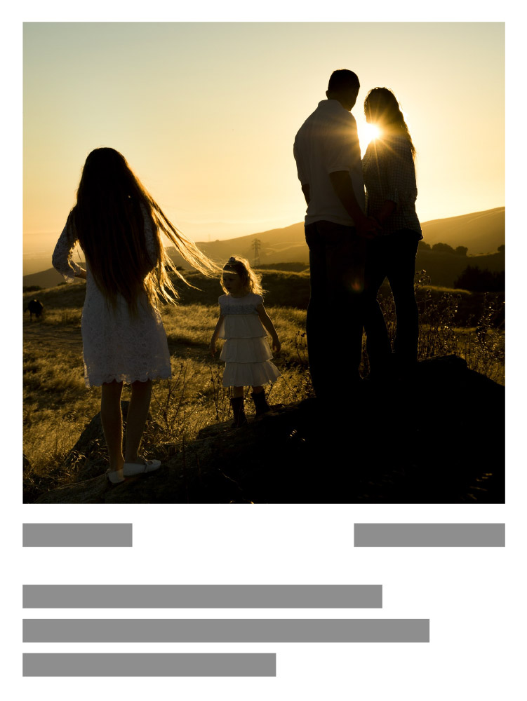 Fotografija tu zaseda največ prostora. Izgled priporočamo, ko je ne želimo preveč obrezati. Fotografije so primerne za denarnico, za na delovno mizo ali v avto.